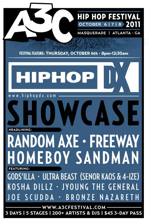 Gods’illa will perform this week in Atlanta for the A3C Hip Hop Festival on the HipHopDX stage with Random Axe, Freeway and Homeboy Sandman. See the flier below for more information.
