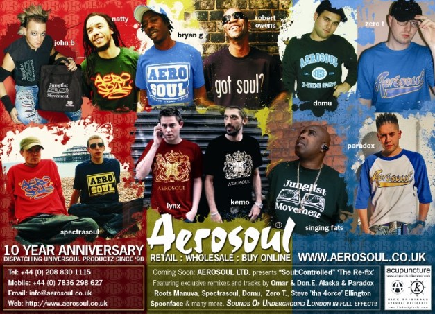 With a good wide selection of designs and colours, Aerosoul’s style is something that is a part of UK urban music. In fact I can’t think about drum’n’bass or jungle music without thinking of them! Their consistency has to be admired. They have just released some quality lines so make sure you check out Aerosoul Clothing. Check out the photos below of UK Rap legends Roots Manuva, Ty and Skinnyman below all supporting! Treat yourself: http://www.aerosoul.co.uk/ as well as checking out their blog www.aerosoul-limited.blogspot.com.