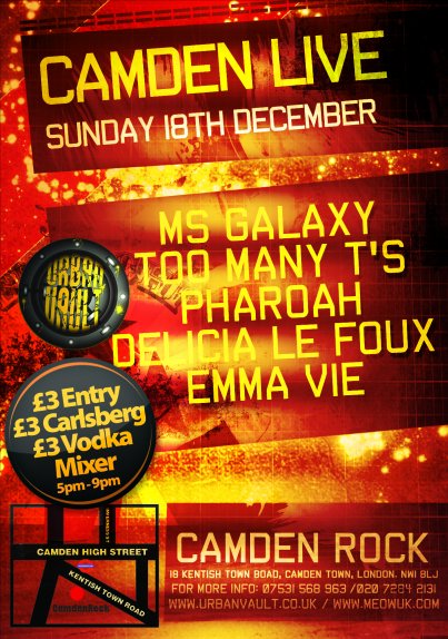 On Sunday 18th December from 5pm – 9pm join us at CAMDEN ROCK for some RnB, Pop & Hip Hop.