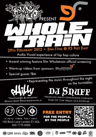 Trackside Burners & GlobalFaction bring an audio visual experience for hip hop & beyond! With live music brought to you by DJ philly & DJ Snuff and screening of Graffitti film WHOLETRAIN. This is truly a night covering Hip Hop culture.