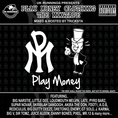 The UK’s longest running UK Hip-Hop mixtape series ‘UK Runnings’ are back with a brand new mixtape in conjunction with leading urban clothing line Play Money Clothing. Featuring a some superb artists the ‘Play Money Clothing Mixtape’ hosted by Tricksta features Akira The Don, Big Narstie, Pixel, Big V, Opiffawana, Brinkworth aka Double E, A.O.B, GT Solo, Ianna Harvey, Enemy, Ra, Fdot1, Dretonio, Marka, Danny Bones, LATE, J.Karma, Tommy Bones, Little Dee, Skriblah DanGogh, Sir Tomz, Juice Aleem, Rediculus, Big Dutty Deeze, Mr. 13, Loudmouth Melvin, Pyro Barz, Jesse James & Supar Novar.