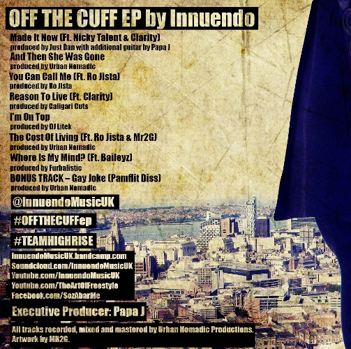 Innuendo ‘Off The Cuff EP’ is out now. This is a great release from the talented Liverpool two times Jump Off battle emcee. Go cop it, straight quality UK Hip-Hop music….
