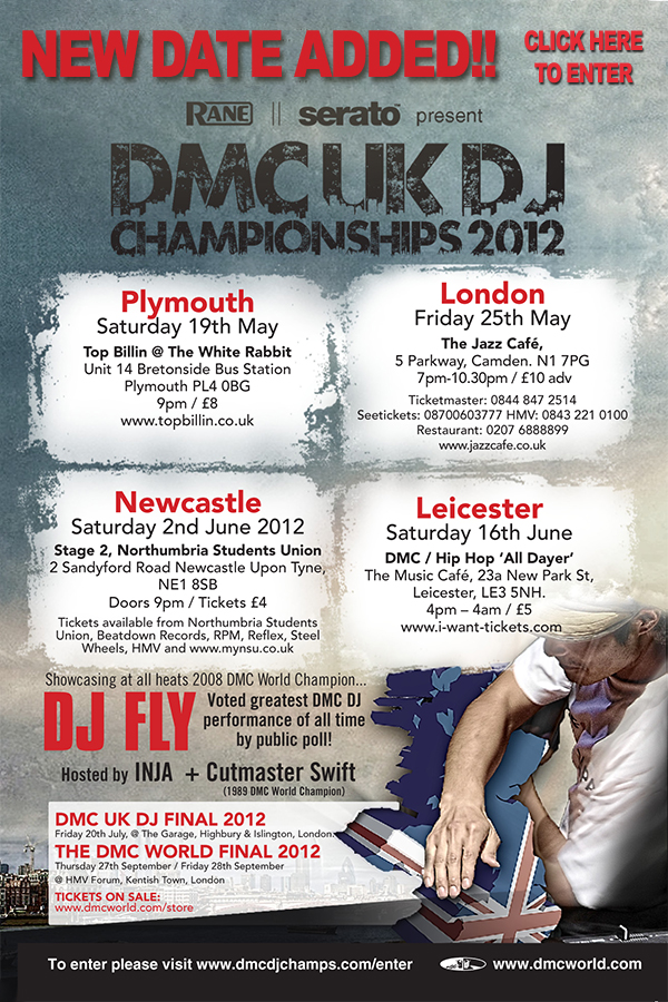 New date added to the DMC UK heats Posted by hiphoplifeandtimes on April 27, 2012 Posted in: Events. Leave a comment Share this: Share on X (Opens in new window) X Share on Facebook (Opens in new window) Facebook Like Loading... Related Posts navigation ← Jesse Abraham – Back Off (AUDIO) Jabbathakut – Once Upon A Crossfade (The Remixes) →