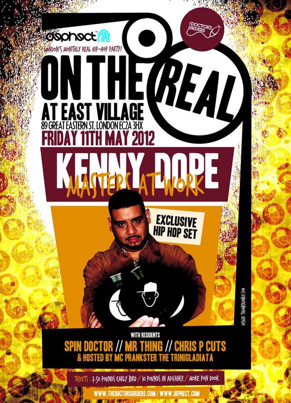 The Doctor’s Orders in association with Dephect present ON THE REAL – KENNY DOPE (MASTERS AT WORK) Exclusive Hip-Hop / Soul Set 10pm-3am Friday 11th May 2012 @ East Village, 89 Great Eastern St, London EC2A 3HX Doctors Orders Website