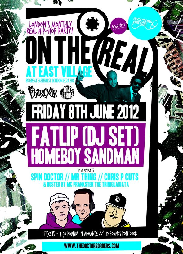 The Doctor’s Orders present ON THE REAL with Fatlip (The Pharcyde / DJ Set) & Homeboy Sandman (Stones Throw) Live 10pm-3am Friday 8th June 2012 @ East Village, 89 Great Eastern St, London EC2A 3HX. Doctor’s Orders Website