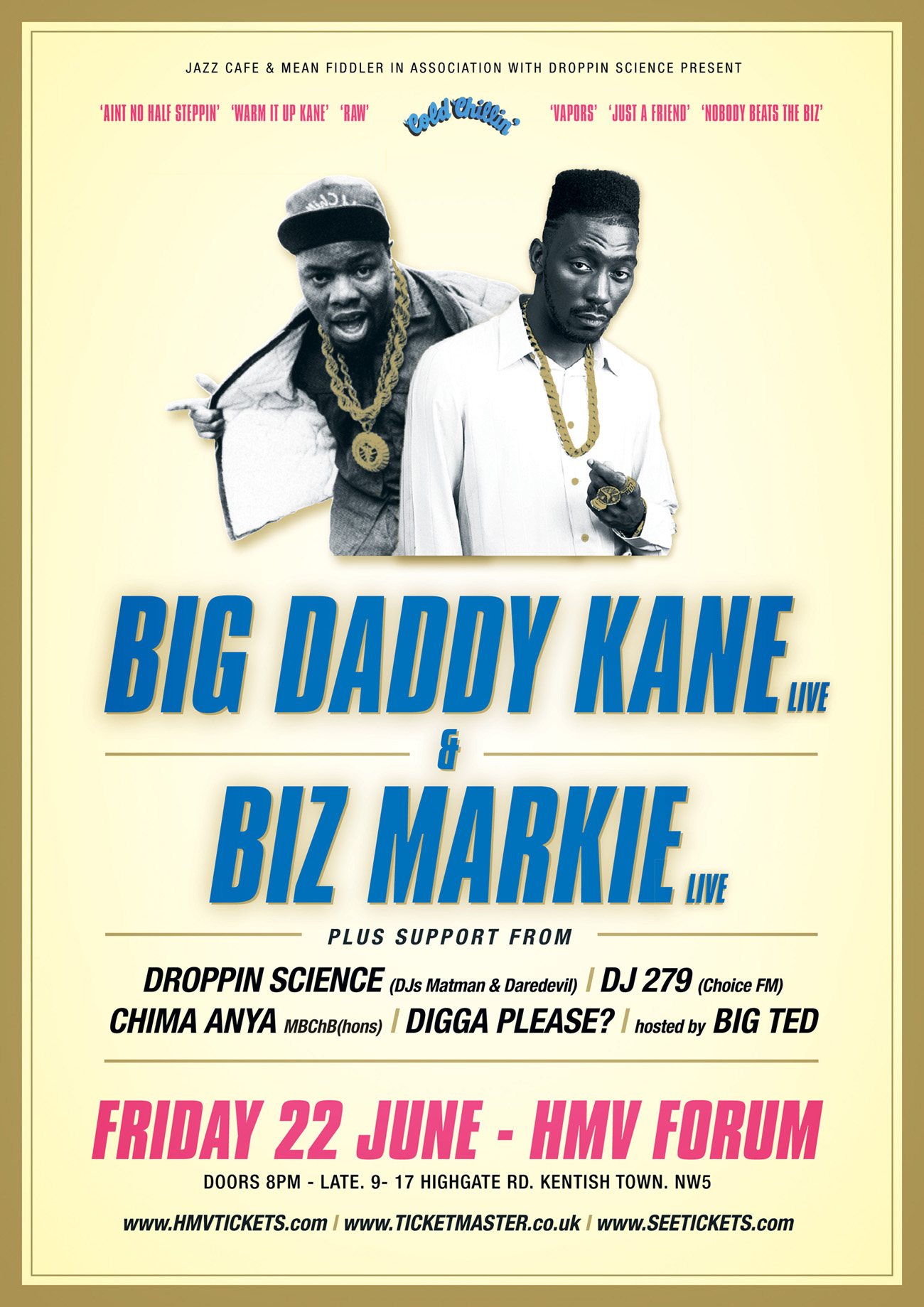 If you’re too young to remember the original Cold Chillin’ Tour then now’s your chance to relive the action. Support from Droppin’ Science, DJ 279, Chima Anya, Digga Please and hosted by Big Ted, Stop Pickin’ Boogers, Ain’t No Half Steppin’, get RAW! Presented by Mean Fiddler and Jazz Café