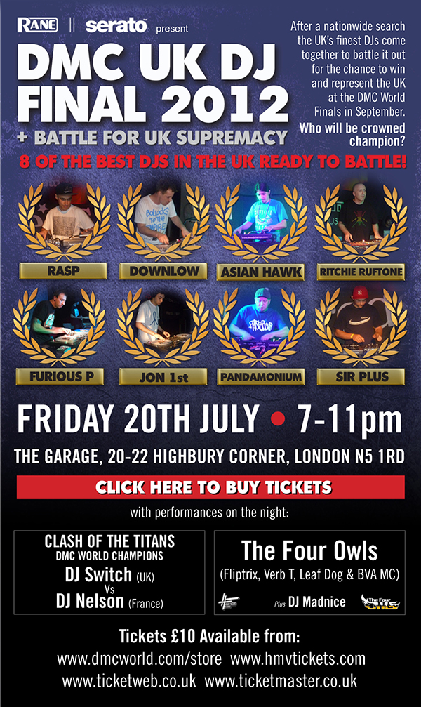Friday 20th July – DMC UK DJ Final – 8 of the best DJs in the UK ready to Battle Posted by hiphoplifeandtimes on July 1, 2012 Posted in: Events, News. Leave a comment Share this: Share on X (Opens in new window) X Share on Facebook (Opens in new window) Facebook Like Loading... Related Posts navigation ← Pre-order Necro’s new album – Godfathers track (Kool G Rap & Necro) & new Manson track MEET N GREET RAEKWON ON WU-LEGENDS TOUR [VIDEO] →