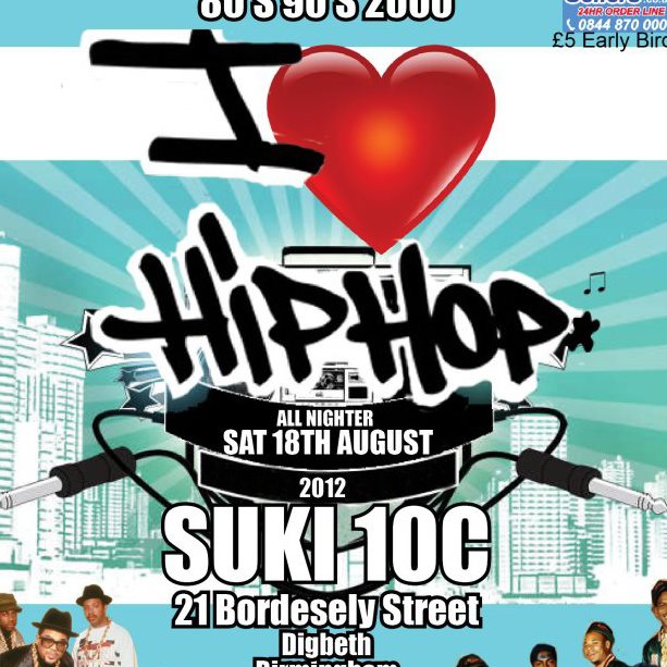 Saturday, 18 August 2012 22:00 until 05:00…. SUKI 10C- DIGBETH, BIRMINGHAM.THE I LUV HIP HOP ALL NIGHTER@NEW UNDERGROUND VENUE IN DIGBETH BIRMINGHAM SATURDAY 18TH AUGUST 2012
