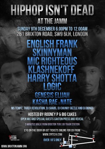 hiphopisntdead Posted by hiphoplifeandtimes on December 4, 2012 This is an image for Hip Hop Isn’t Dead @ Brixton JAMM 9th December. Images navigation