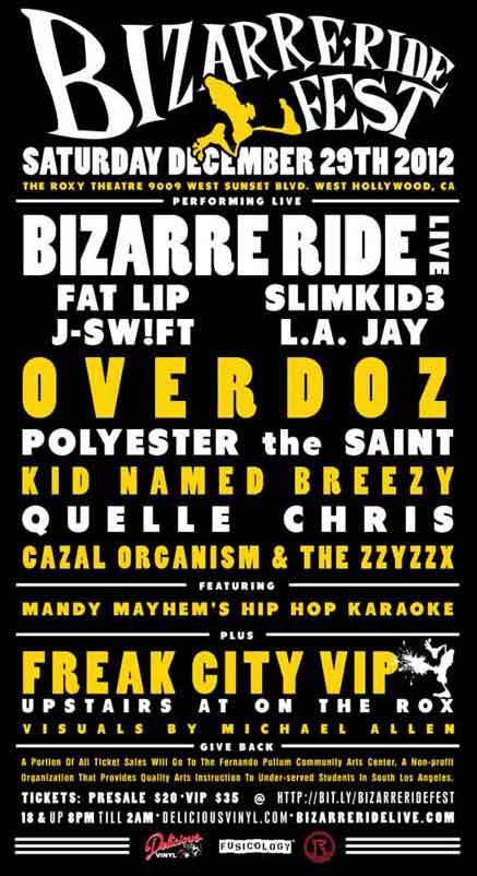 Bizarre Posted by hiphoplifeandtimes on December 18, 2012 This is an image for Fatlip & Slimkid3 announce “Bizarre Ride Live” world tour dates [VIDEO] @Slimkid3 @Iamjswift @DeliciousVinyl. Images navigation