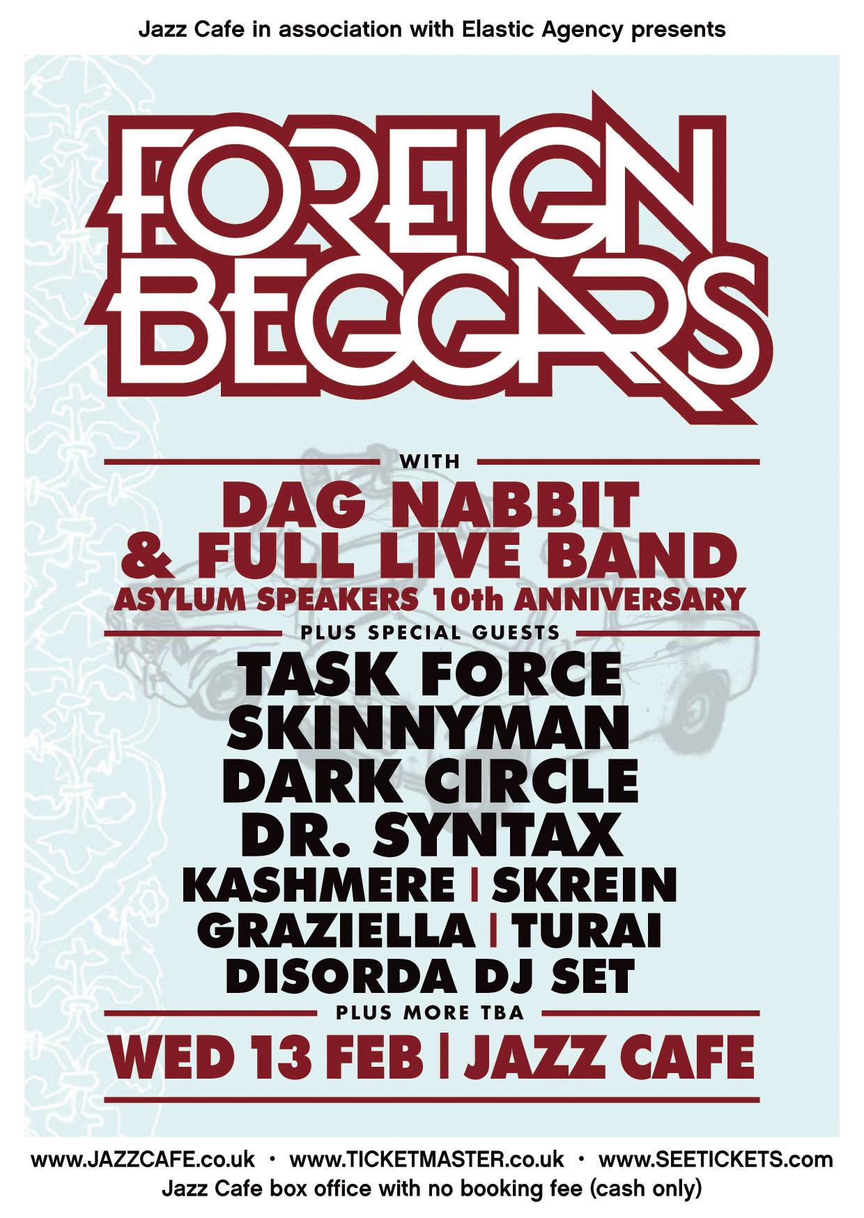 To mark the 10th anniversary of the Foreign Beggars album ‘Asylum Speakers’ they are throwing a one off party at the Jazz Cafe in Camden, London on the 13th Feb. Full crew representing. Limited Spaces Only http://bit.ly/AsylumTickets