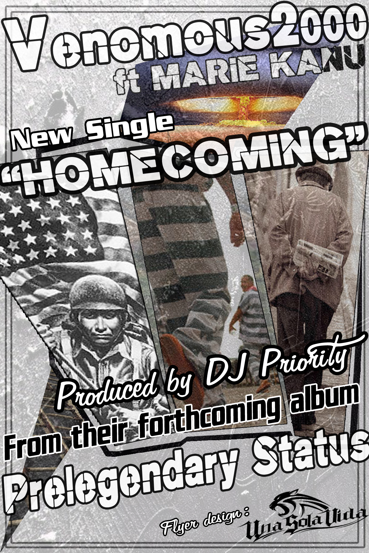 A pretty poignent track from Venomous2000 and DJ Priority, featuring Marie Kanu.’Homecoming’ Charts the story of a soldier back from his 4th tour of duty fighting in the desert. It follows him from his time in the war battling with the realisation that he might not be helping the people he’s been sent to protect from the enemy. Still suffering from PTSD from his last tours, and wondering how he’ll adjust to civilian life, and resolve issues with his family and squaring things away with God. The final verse concerns the story of the solider years later, still fighting internal battles.