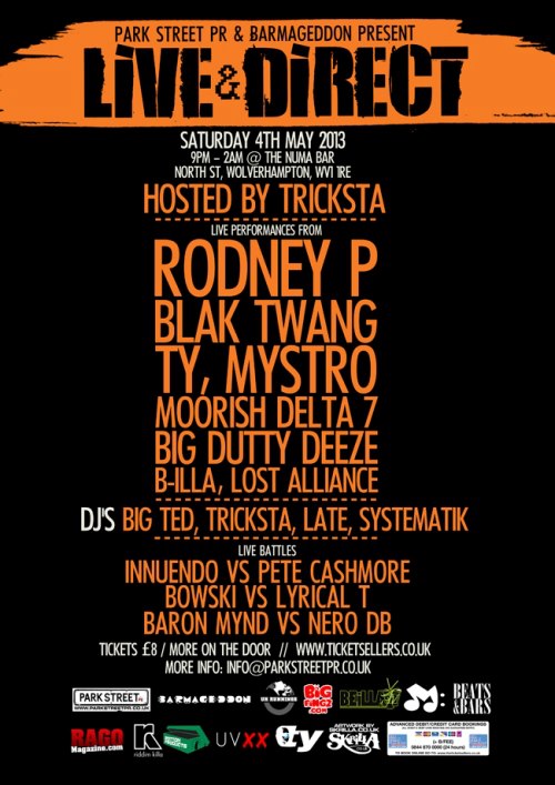 The line up for this event is absolutely HUGE!! Hosted by our homie and Park Street PR CEO Tricksta, the event features a host of the UK’s heavyweight veteran emcees as well as some of our best emerging talent….. if you can get to the Wolverhampton area for that weekend, you’re in store for a night of the sickest UK Hip Hop available!!