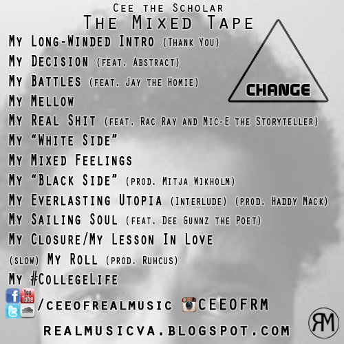 Cee the Scholar is part of an independent hip-hop group based in Northern Virginia called R.E.A.L (Resurrecting Every Aspect of Lyricism), this is Cee the Scholar’s first mixtape under the new moniker as well as his first solo mixtape since 2011.