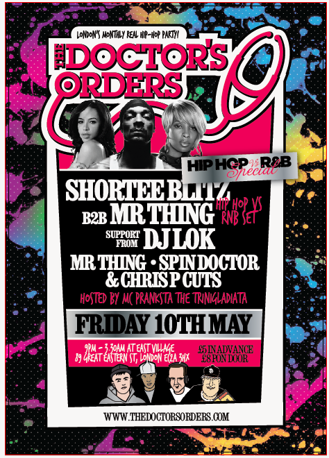 Kiss FM’s, MOBO award winning DJ Shortee Blitz is as adept at tearing up a dance-floor with such soul drenched sounds as he is Hip-Hop. He will be tearing through everything from 90’s Teddy Riley produced classics to Beyonce bangers while resident Mr Thing keeps to his well loved Hip-Hop bangers as they go back to back for three hours in this Hip-Hop vs R&B special.