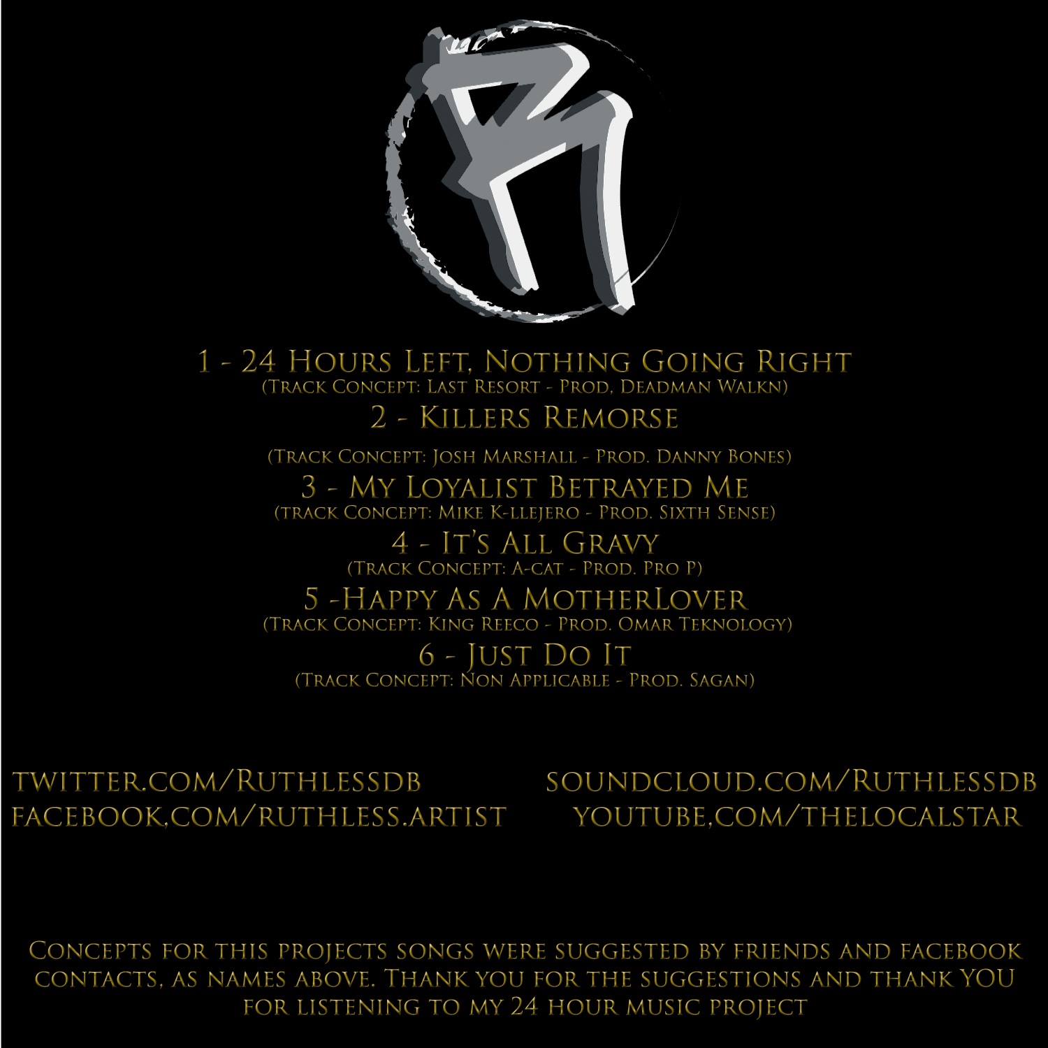 The concept of the idea was in 24 hours Ruthless would write 6 tracks on ideas given to him by his Facebook friends then using 6 top UK producers beats, set down to get the project done. He also found the time to get guest verses from ALEX-IS & BOBBIE JOHNSON.