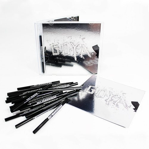 The CD version of “G.O.Y.A.” comes in a limited ‘Coca-Case’ package, featuring a foil-mirror cover, embossed with the word ‘G.O.Y.A.’, and including a 3.5 inch ‘Snuff Straw’ in the spine of the jewel case