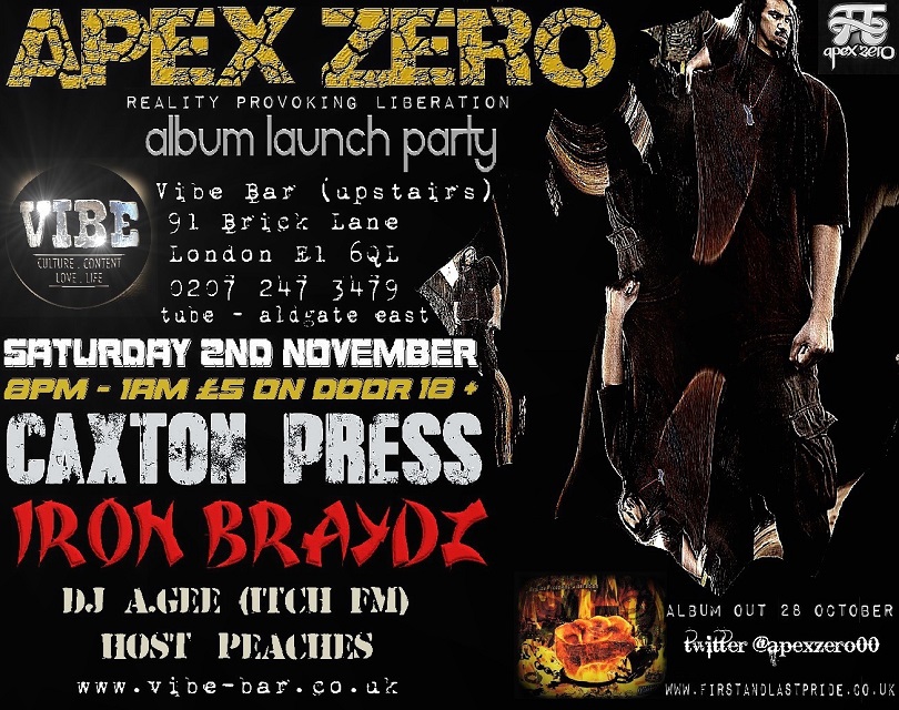 London hip hop Emcee and producer Apex Zero releases his debut solo album “Reality Provoking Liberation” on 28th October 2013.