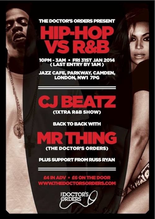 HIP-HOP vs R&B – Fri 31st Jan @ Jazz Cafe MR THING & CJ BEATZ GO BACK TO BACK