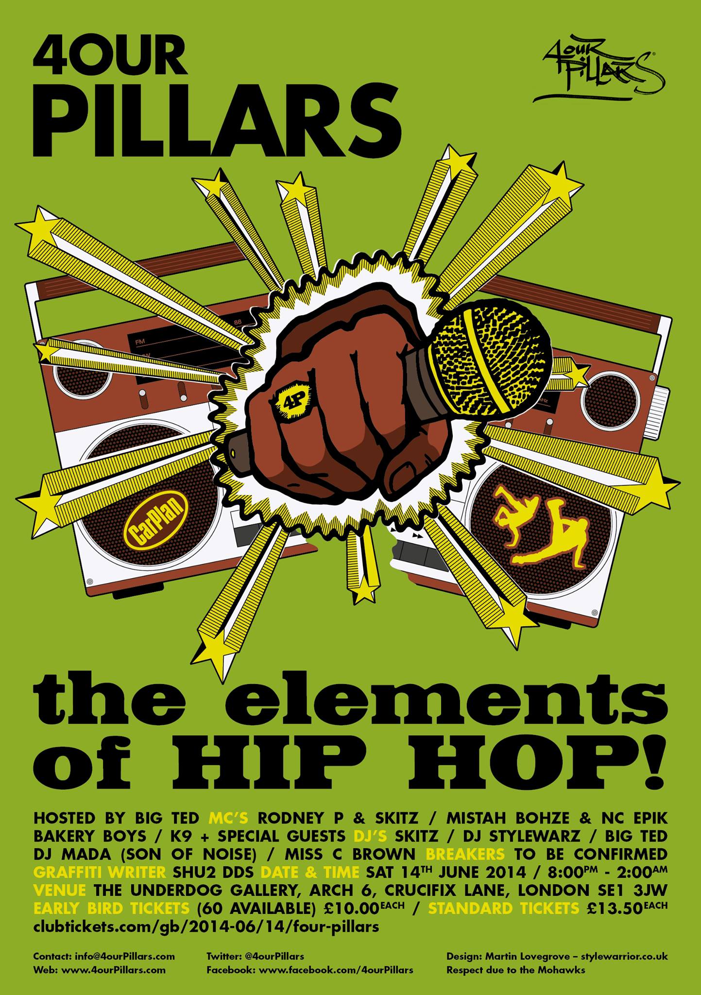 The 4our Pillars are proud to announce that they are holding their 5th Hip Hop event on Saturday June 14th 2014.