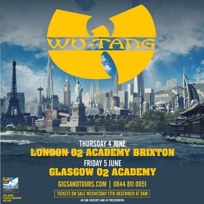 SJM concerts are pleased to announce the details of the UK tour for Wu-Tang Clan in June 2015 including two very special shows at London O2 Academy Brixton on 4th June and O2 Academy Glasgow on 5th June.