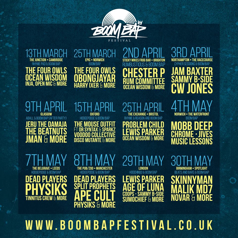 Boombap Festival Warm-Ups #@BoomBapUK Posted by hiphoplifeandtimes on April 18, 2015 Posted in: Events. Leave a comment Share this: Share on X (Opens in new window) X Share on Facebook (Opens in new window) Facebook Like Loading... Related Posts navigation ← Frank Nitt – Slippin’ ft. Illa J Joey Bada$$ – Badmon Freestyle →