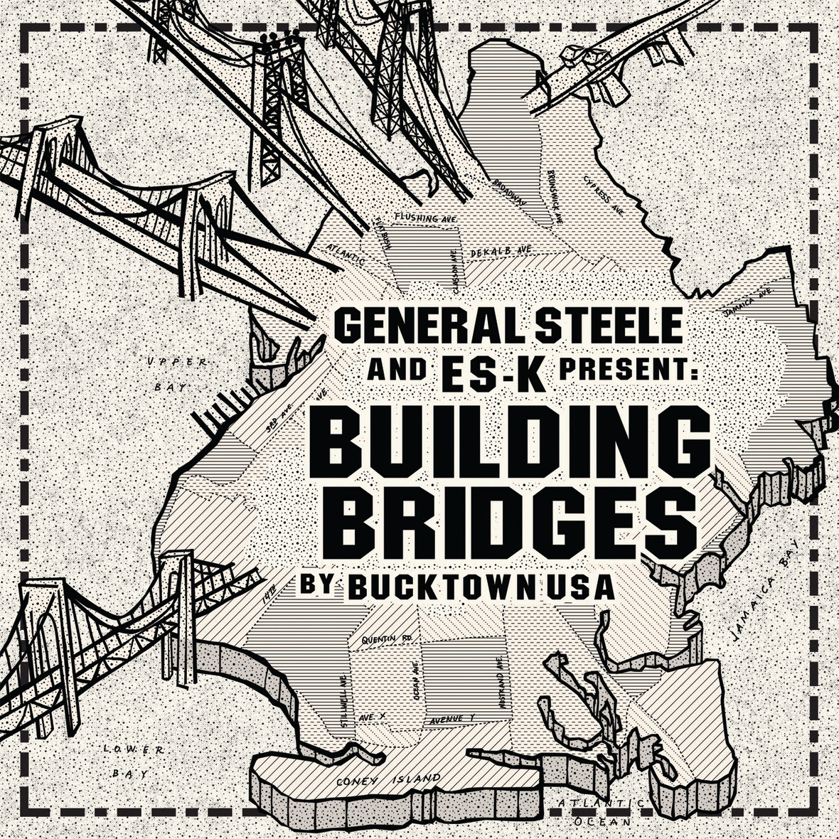 The cover art comes courtesy of Joe Buck, the artist behind the ‘De La Soul Is Dead’ cover art. ‘Building Bridges’ appears via Bucktown USA, the multi-media company General Steele created in 2004 alongside partner Cynical Smith, with digital distribution through Duck Down, including a limited-edition pressing of 500 records which will be available 02/12/16